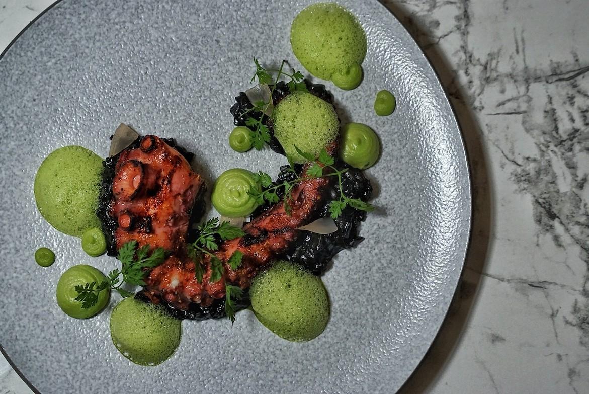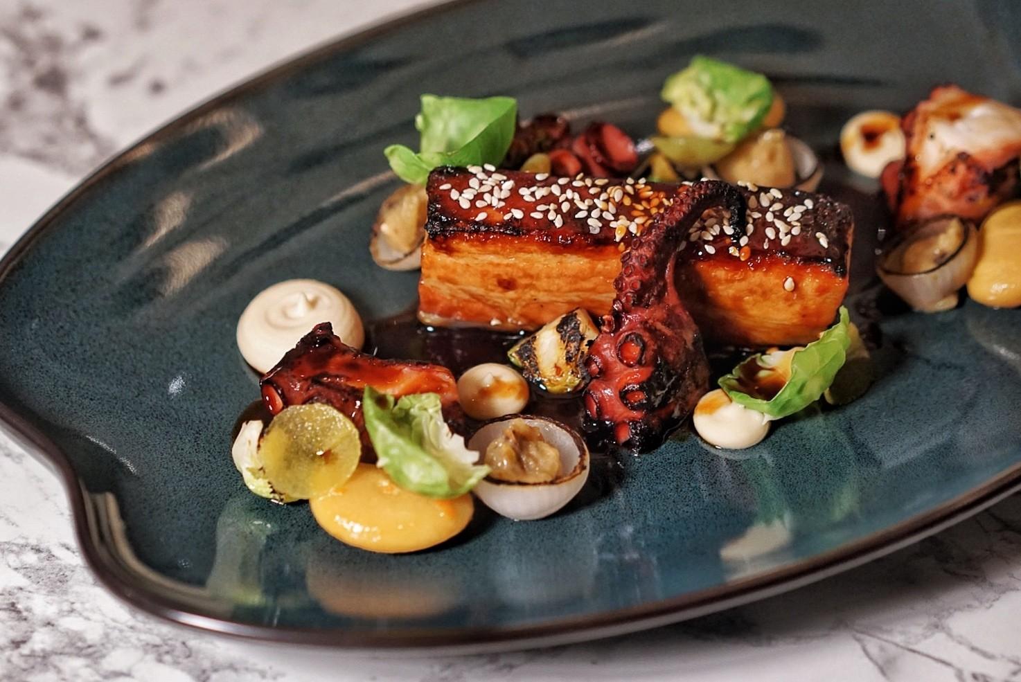 Confit Pork Belly, Grilled Octopus, Apple and Pistacho Chutney, Cinnamon Wine Reduction (RMB168)