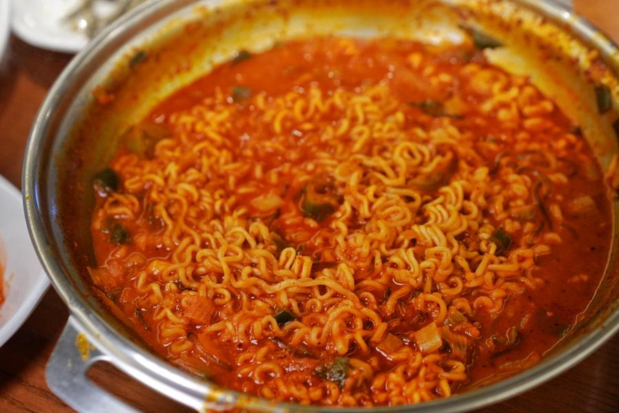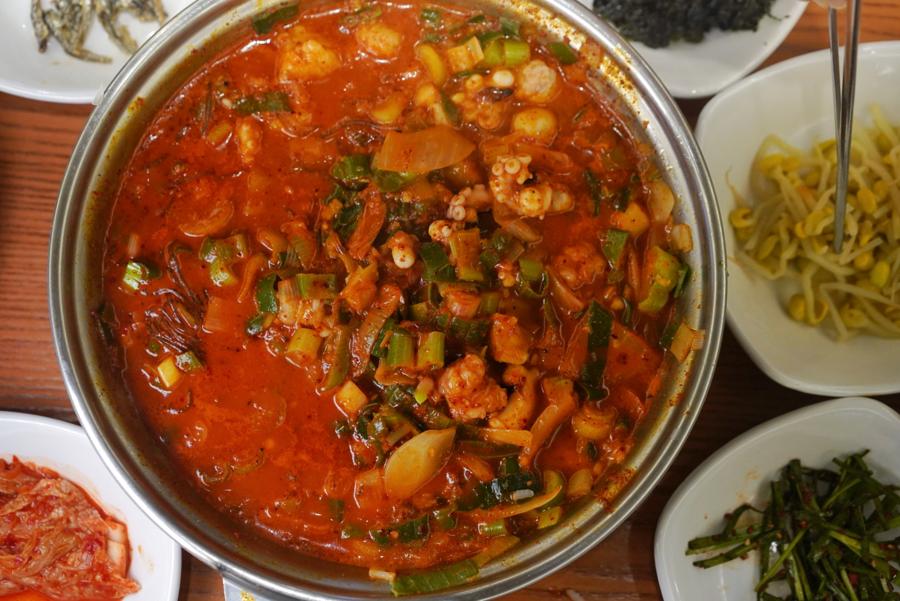 Gaemijip: This Busan institution doles out stir-fried octopus dishes like nakgop bokkeum (octopus, small intestine, shrimp) and naksae bokkeum (octopus and shrimp), which are cooked in a hot pan at diners' table slathered in a secret spicy sauce. Most diners also add rice, ramen, or udon to their dish to soak up more of the sauce. The set goes for 13,000 won per person.