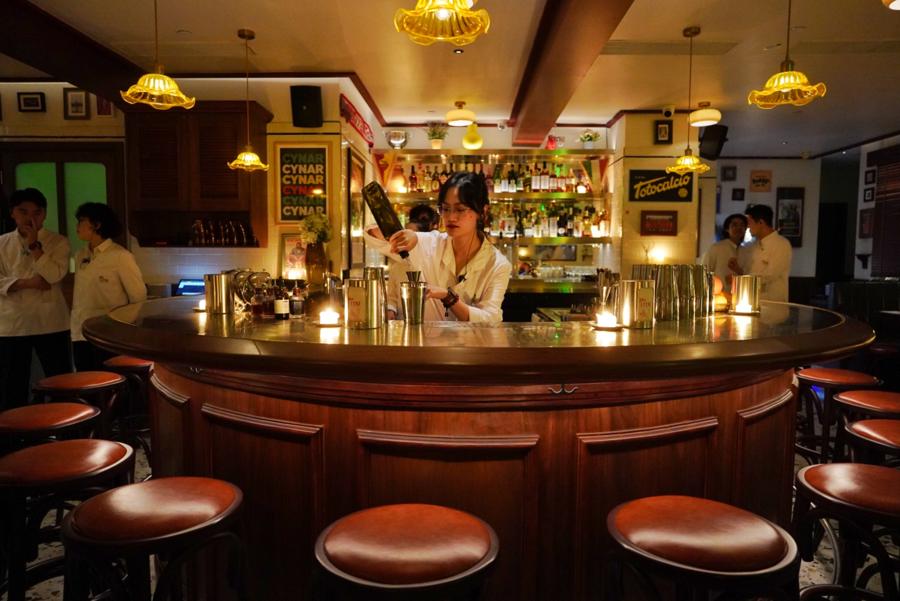 Bar Leone Shanghai’s first floor is dubbed Bar di Passo, an Italian “passing bar” that encourages quick conversation, to-the-point aperitivo drinks, and a community feel influenced by neighborhood haunts like the institution that is Milan’s Camparino.