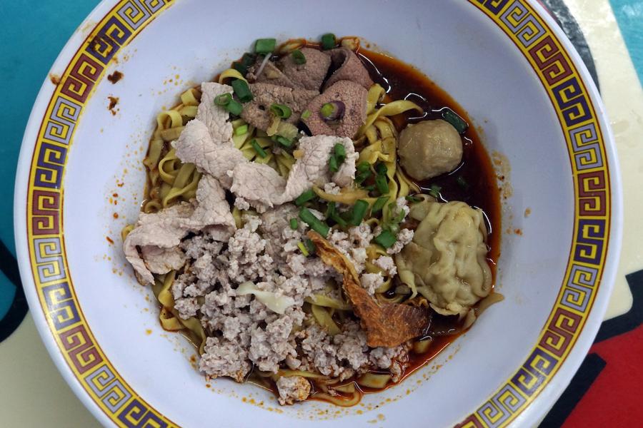 Jiji Wanton Noodle House: This multi-generational hawker stall in Singapore has earned a Michelin Bib Gourmand recommendation for its wanton noodles, which arrive tableside in generous portions, smothered in homemade dark soy-based sauce. Available in both dry and soup versions, the QQ texture squiggly noodles are crowned with substantial slices of char siew (roast pork), braised mushrooms, blanched greens, and both deep-fried and boiled wontons. The accompanying soup is often sweetened with goji berries and red dates for clean, finish.