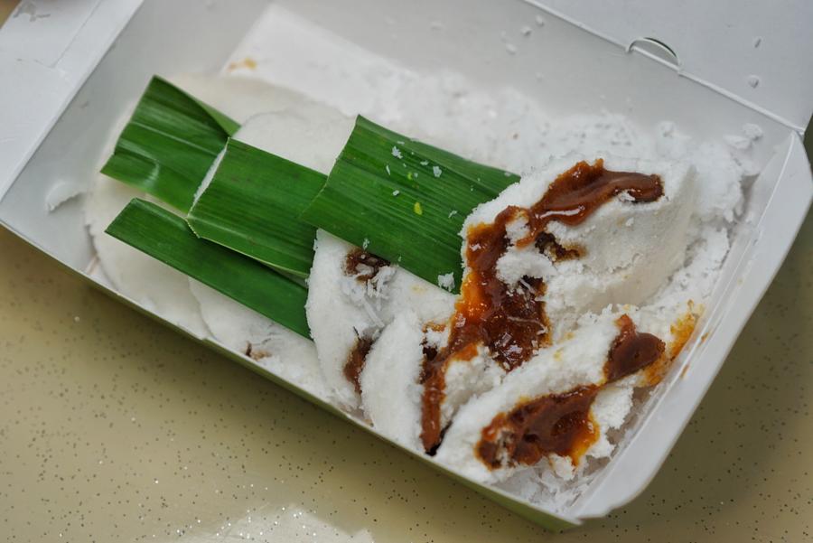 Putu piring is a steamed, soft rice flour cake, traditionally filled with melted palm sugar (gula melaka) and served warm with freshly grated coconut and sometimes pandan leaf.