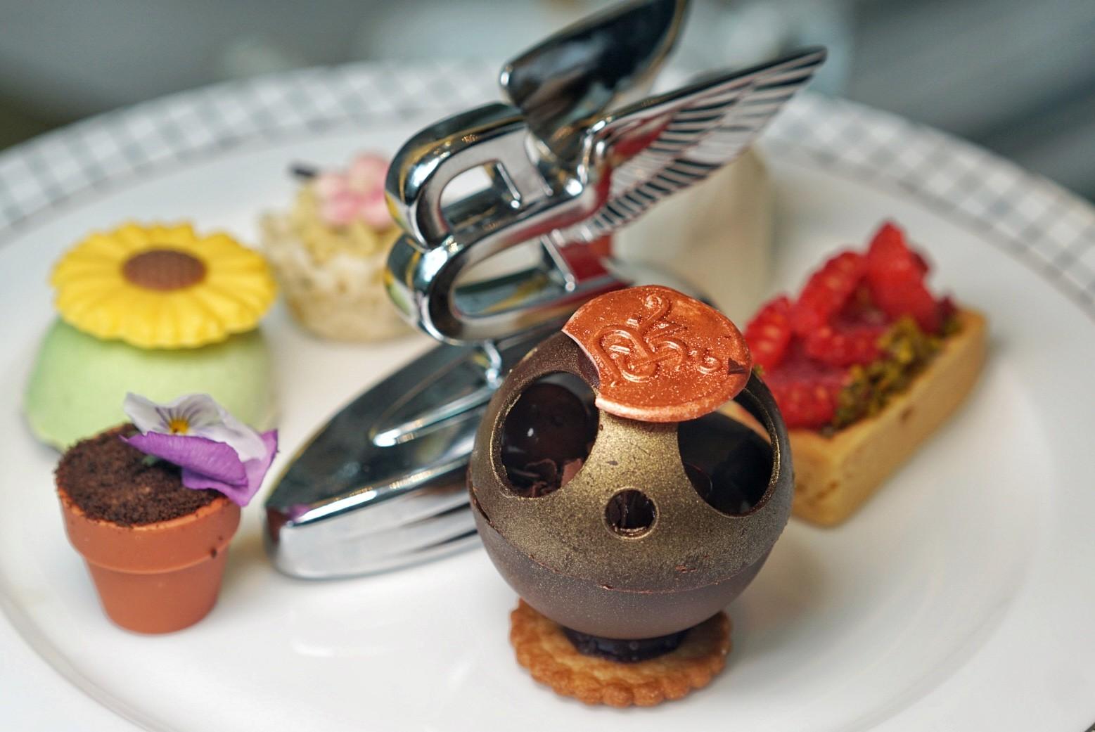 The St. Regis' pastry team, led by Pastry Chef Angela, has flexed their creativity muscles, upgrading the traditional English three-tier afternoon tea set to fit the co-branding between Bentley and the hotel.