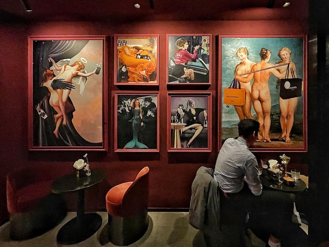 Collaborating on the design front, hcreates brings together the layout and aesthetics of the interior design, while The Orange Blowfish covered nearly every inch of wall space with Baroque and Victorian period pieces painted over with contemporary symbols.