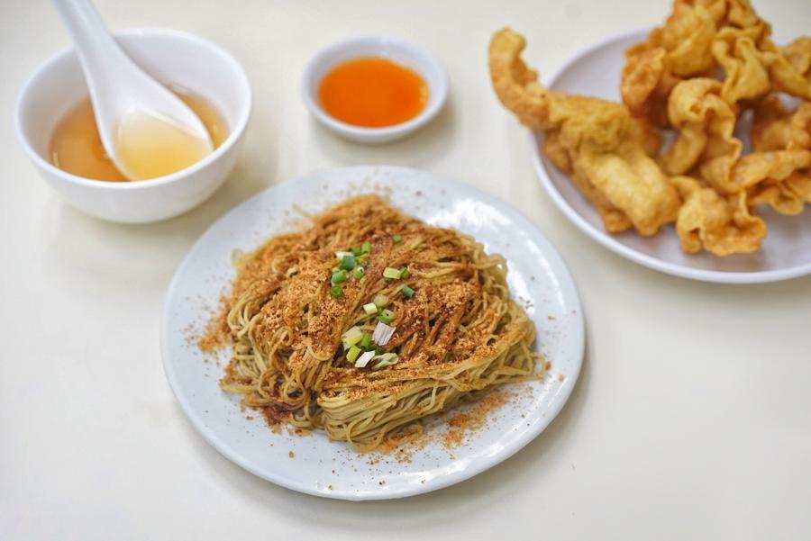 With lunchtime nearing, Loja Sopa da Fita Cheong Kei fits the bill, a Macanese noodle shop specializing in shrimp roe noodles. Thin, springy egg noodles are dusted in an umami-rich dried shrimp roe powder, presented alongside the restaurant’s signature shrimp clear broth – a tidal wave of oceanic salinity. The noodles are made in the traditional way, with the dough folded over onto itself several times before being pressed down on hundreds of times with a heavy bamboo tube, ensuring the optimal elastic mouthfeel. Diners here also enjoy the shatteringly crisp wontons, with light and airy fried edges coming together in the center with a dollop of minced shrimp.