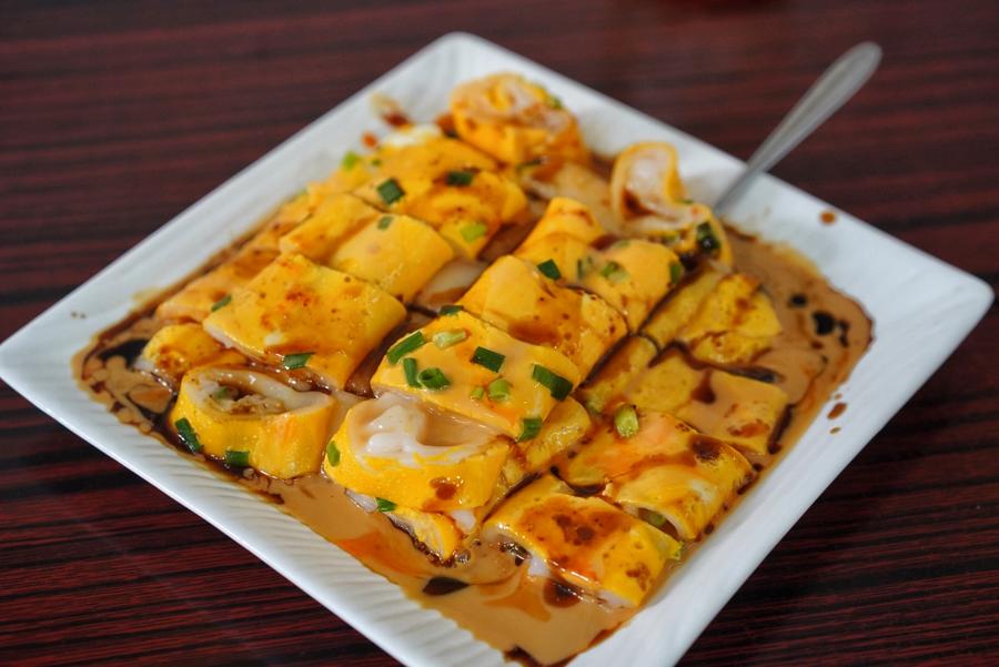 Its squiggly appearance is referenced in the dish’s name, which literally translates to “intestine noodle” as it somewhat resembles certain innards.