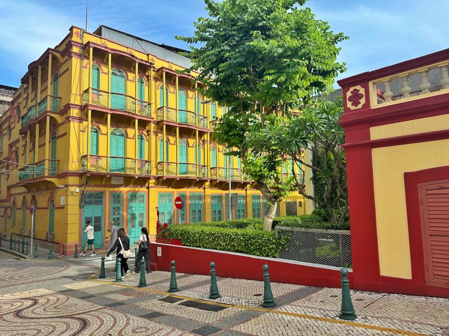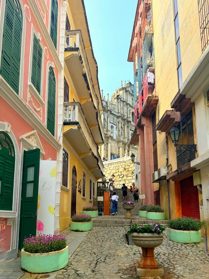 Next, pass by the canary yellow St. Dominic’s Church to Senado Square. This pedestrianized UNESCO World Heritage site boasts black and white wave-patterned Portuguese mosaic paving and pastel-colored neoclassical buildings, like the Holy House of Mercy. The square serves as a bustling hub that connects both historic sites and modern shops, cafés, and restaurants.