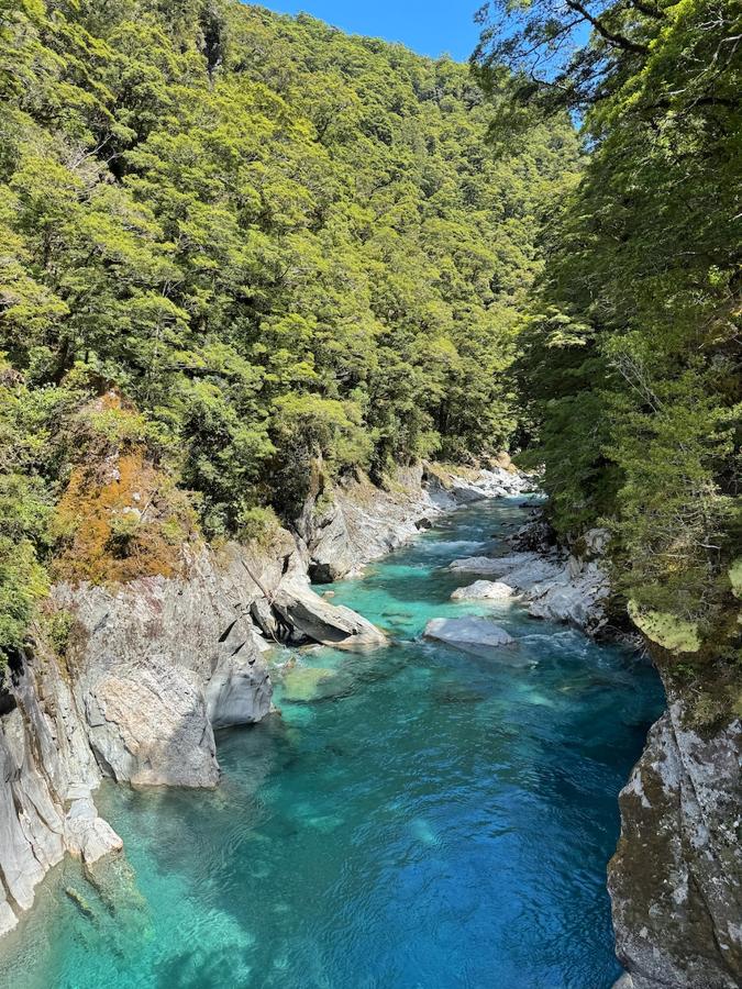 The Hokitika Gorge features vibrant turquoise waters easily accessible via a 15-minute easy walk to the main viewpoint. Do note that the full trek takes about 45 minutes and goes through dense forest, so dress in layers and be prepared for bugs.