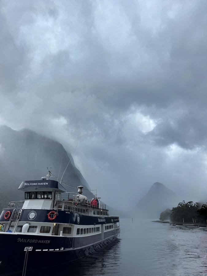 A highlight of any visit to Te Anau is the Milford Sound cruise. One of the wettest places on earth, Milford Sound experiences nearly seven meters of rainfall each year spread over typically 200+ days, making for a moody backdrop and otherworldly feeling. Waterfalls here only appear after rain, numbering in the thousands. But come on a sunny day and you're lucky to spot one. The town of Milford Sound is home to only 120 residents, yet the area sees over a million visitors annually, earning its spot as both a UNESCO Protected Heritage Site and a National Park. (To put it in perspective, the entire population of all of New Zealand is 5 million people.