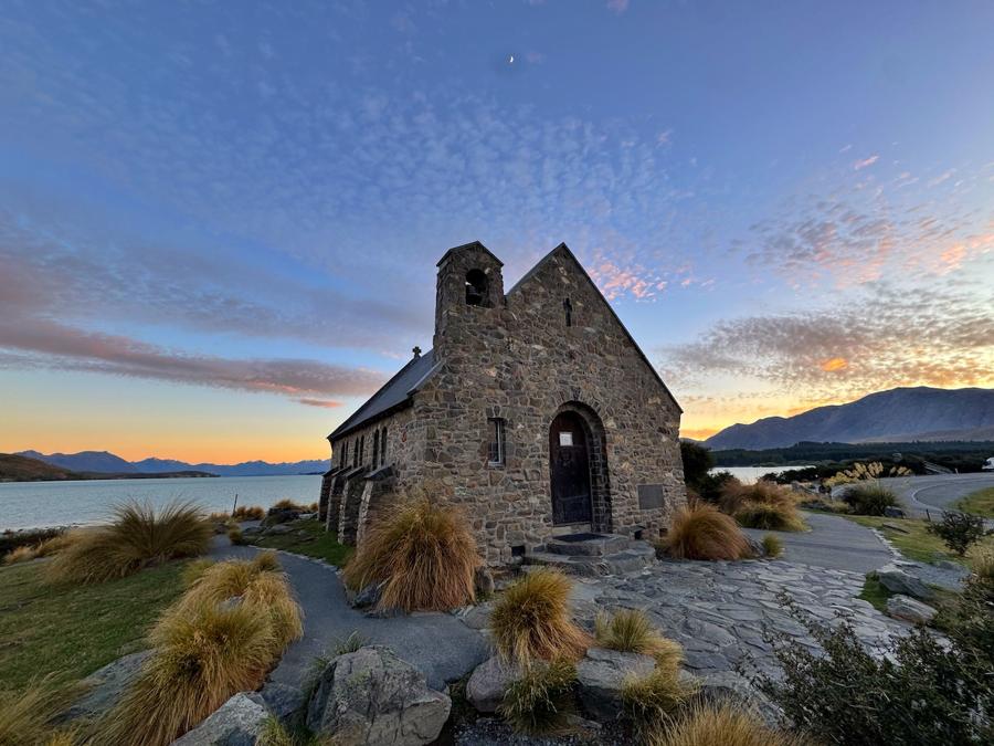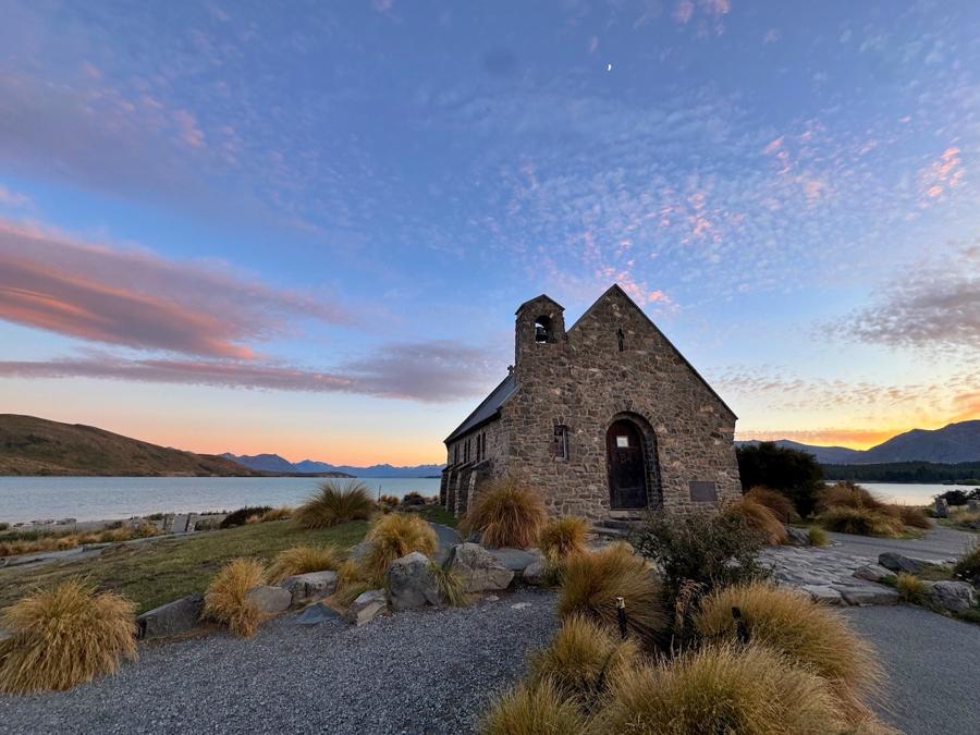 Be sure to visit the timeless Church of the Good Shepherd, a beautiful stone church set against the exquisite backdrop of Lake Tekapo. It’s a popular spot for photos at all hours, particularly sunrise and sunset.