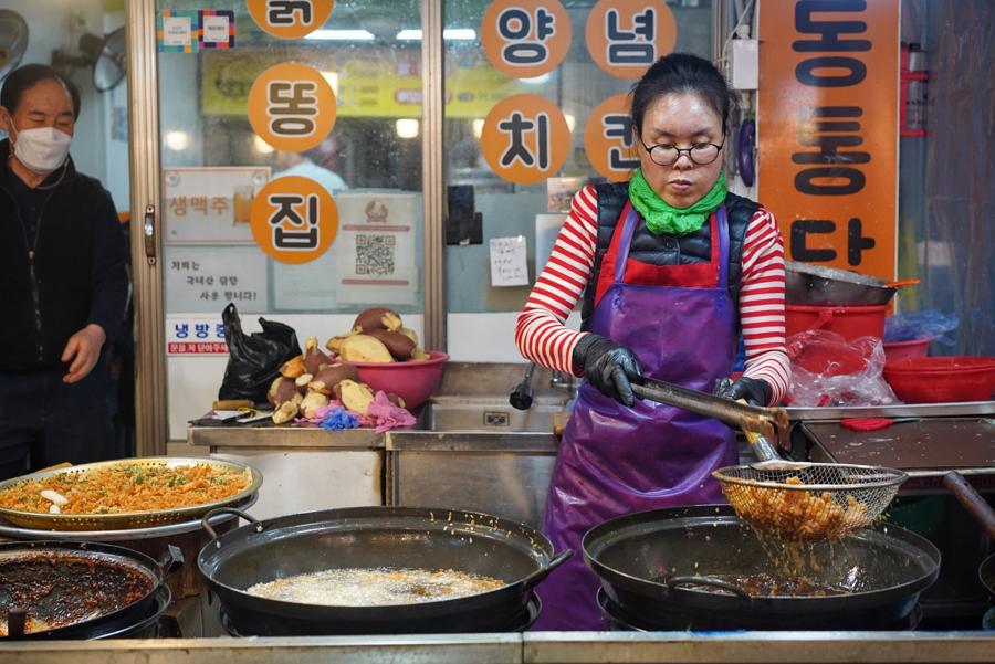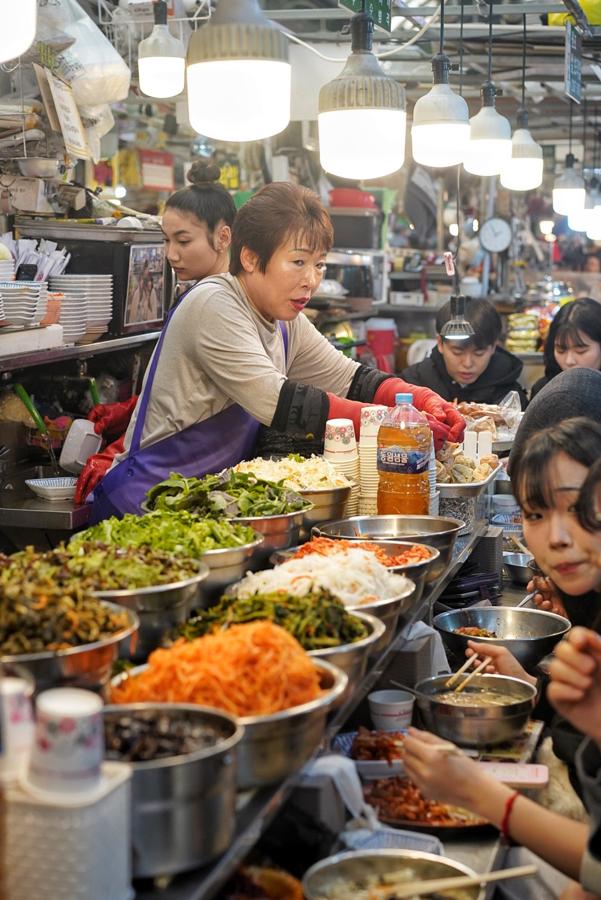 Andongjip Son Kalguksi: Aside from handmade knife-cut noodles (kalguksu), the owner Chef Kim Mi-ryeong, also known as "Auntie Omakase #1" from the Netflix show Culinary Class Wars makes some standout dolsot (hot stone sizzling) bibimbap inside Gyeongdong Market.