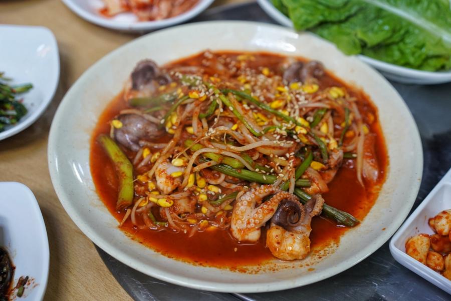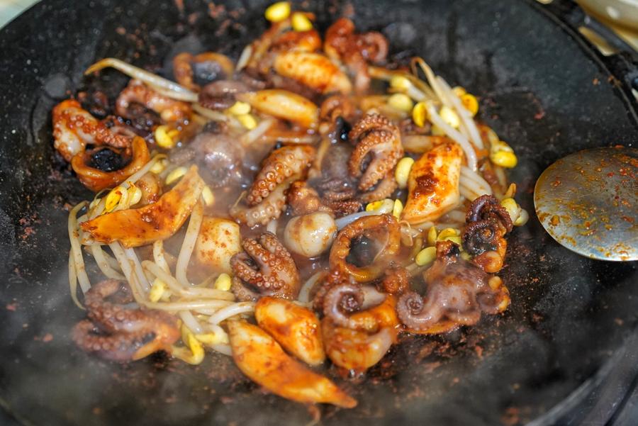 Grandma Na Jeong Sun's Jjukkumi: Located on the same street, this internet famous shop serves the same style of stir-fried octopus, for a minimum of two people, starting at 10,000 won per person.