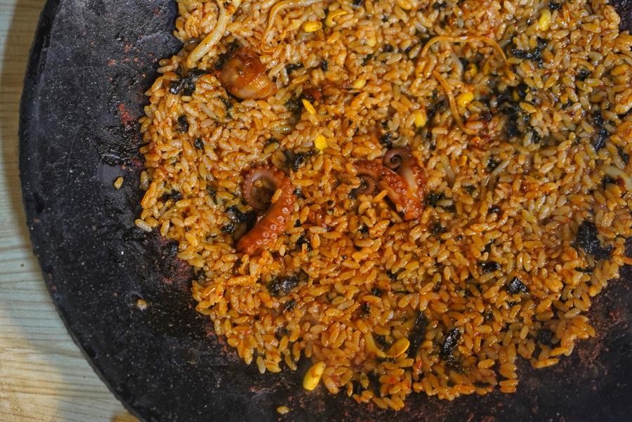 Jjukkumi Bokkeum is a stir-fried small, tender octopus (jjukkumi) dish tossed with a gochujang and vegetables. Fiery and filling, this dish is best finished by mixing with crispy rice on a hot plate.