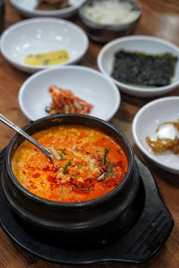 Jaedong Sundubu: A bustling spot for handmade, bubbling hot sundubu jjigae (soft tofu stewed) served in a clay pot. The sets include stew, rice, and unlimited banchan.