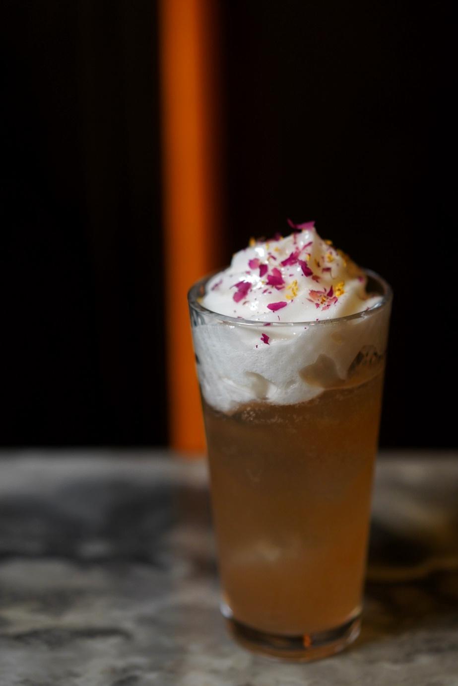 Dry gin and osmanthus rice wine come together with lychee, lemon and grapefruit juice as the Drunkened Concubine (RMB110), a floral dram presented with a cloud-like osmanthus foam top.