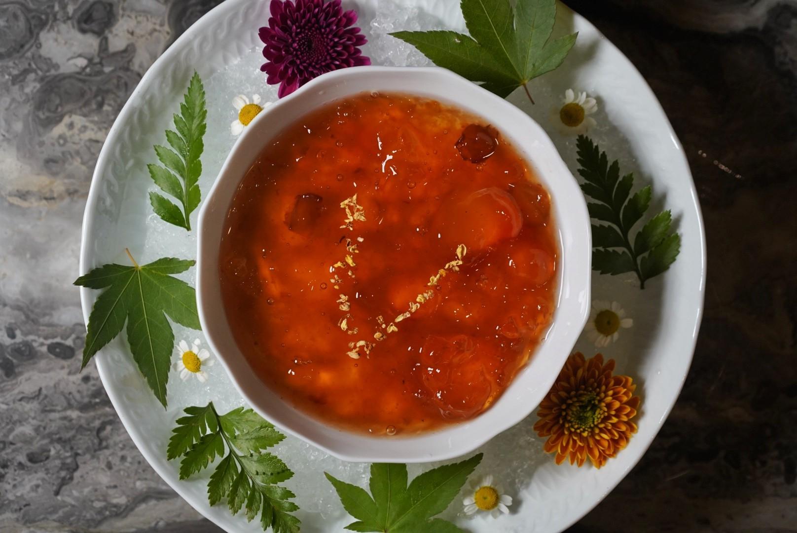 A traditional Cantonese dessert, the silky Almond Tofu Pudding (RMB69) is adorned with a generous serving of Earl Grey tea-infused peach gum, a delicately sweet and guilt-free meal conclusion.
