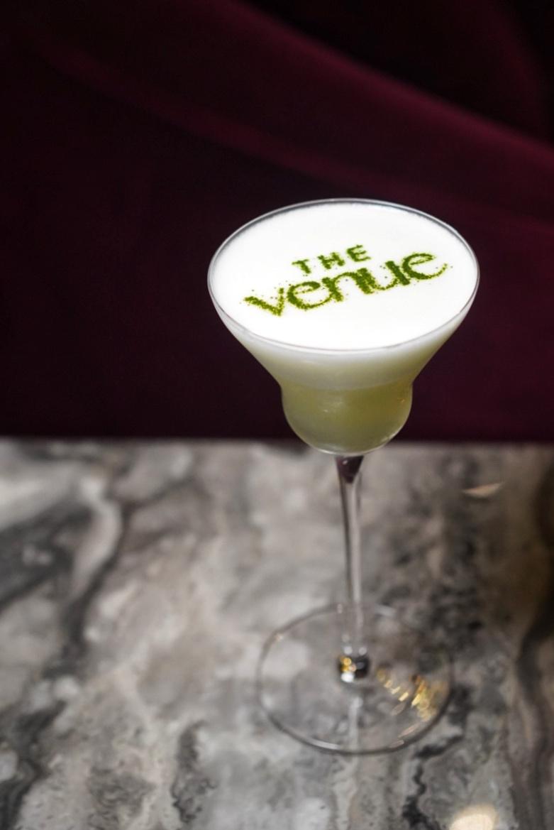 A refreshingly cilantro-forward play on a sour, the Shanghai Connection (RMB110) sees a blend of vodka, coriander, coconut, lemon and sour apple, all finished with a creamy egg white foam topper, branded with The Venue’s logo.