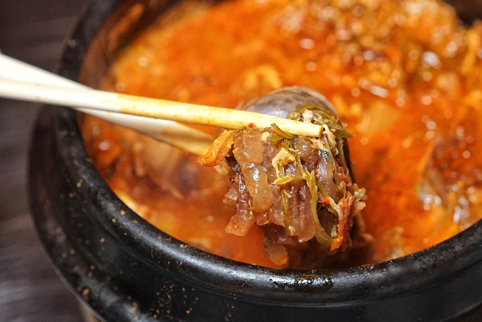 Homemade blood sausage, or sundae in Korean, is stewed in a kimchi-based broth as the Sundae Yukgae Jang Stew (RMB48) – with creamy, mineral-forward exploding sausage bits in every bite.