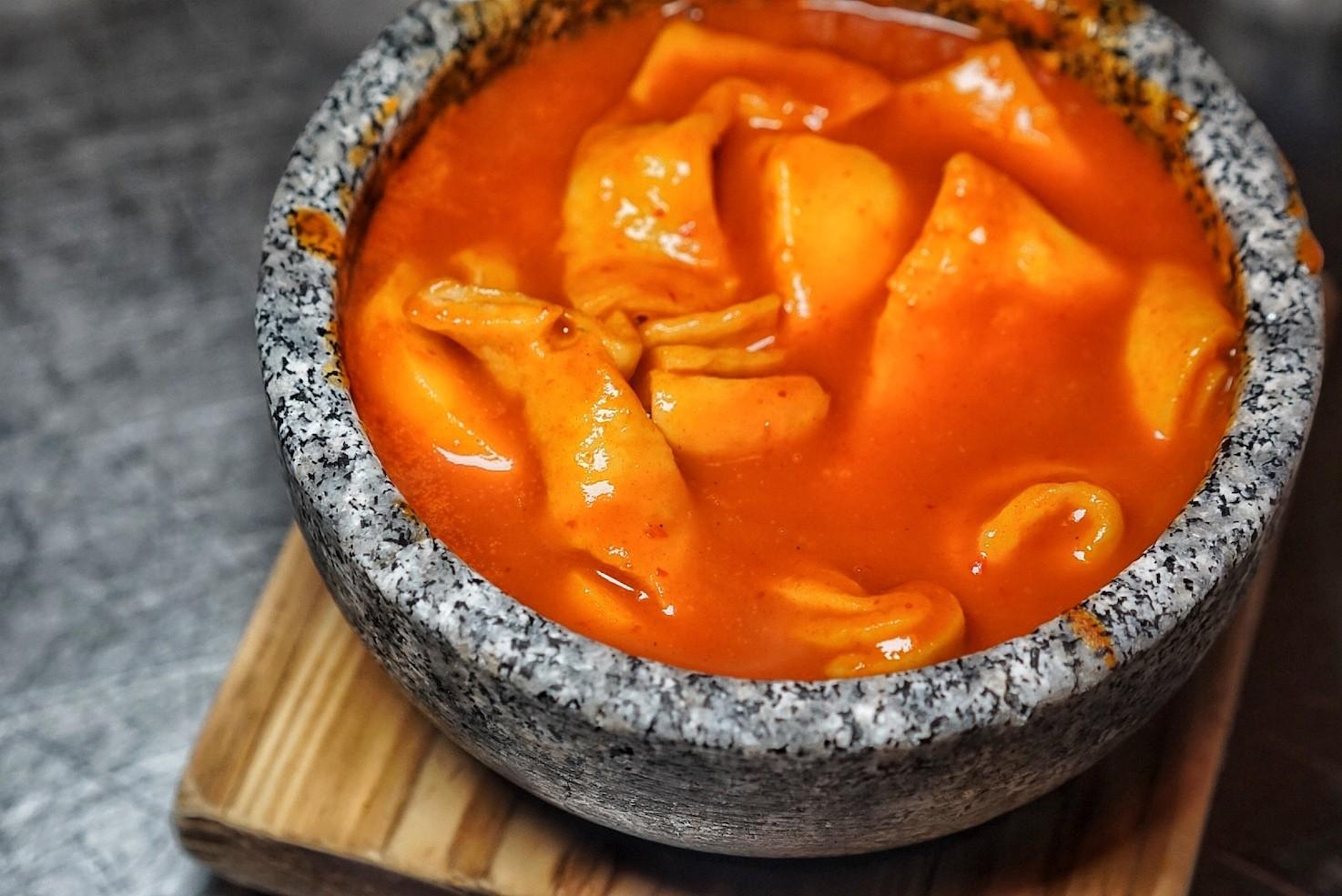 An upgraded alternative to the traditional tteokpoki, Grandma’s Spicy Tteokpoki (RMB48) is a brimming bowl of tangy gochujang soup with over 31 ingredients, served with a tubular slab of sticky rice cake and fish cakes, all clipped tableside into bite-sized slices in the bubbling broth.