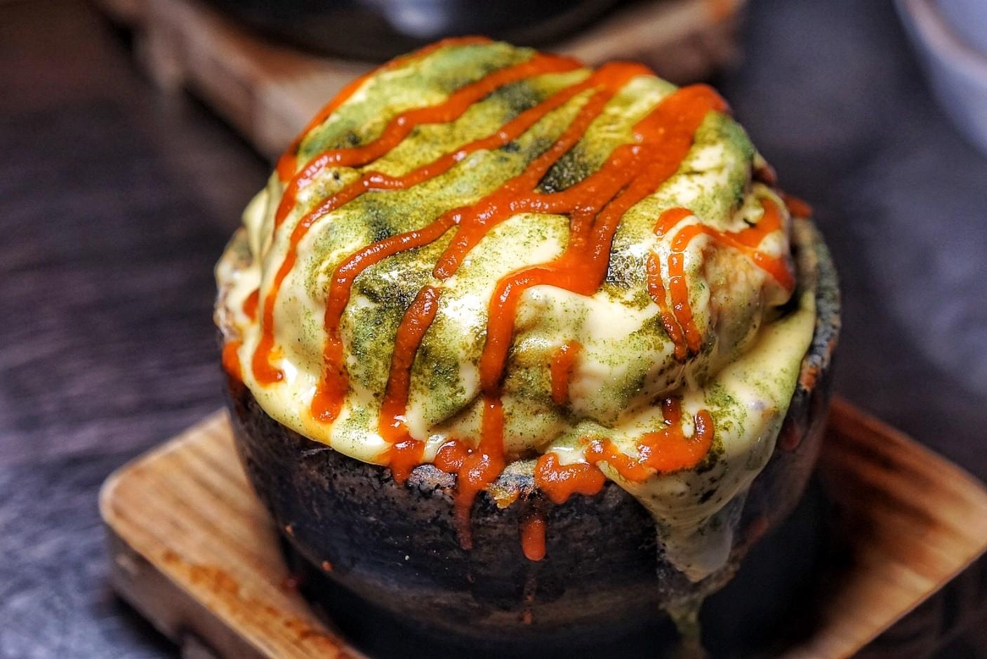 As much as Korean BBQ is all about the meat and banchan, at Botong Sikdang, the side dishes are just as standout. A fluffy whipped egg concoction is smothered in an ocean of gooey cheese as the aptly named Volcano Cheese Egg (RMB48), then dusted with gamtae, a type of kelp seaweed powder unique to Korea, and a drizzle of sriracha.