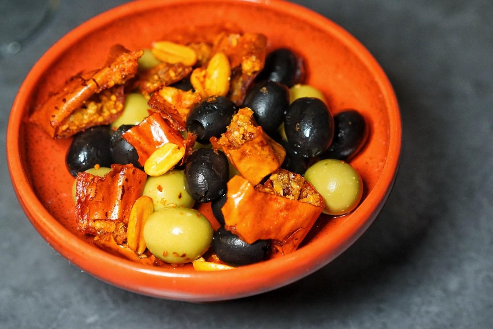 Starting with small nibbles, the Magic Chili Olives (RMB48) are exactly what you would expect, and crave, to eat at a bar – a bowl of black and green olives, spicy peanuts and fried chili crisps.