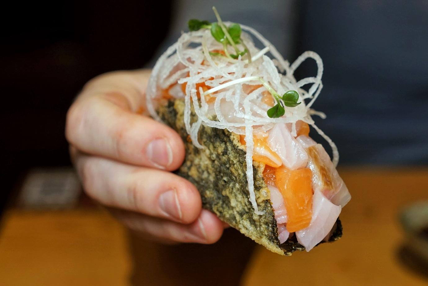 Dianping wanghong spot Jin Yan Shitang (金焰食堂) started in the mall across from Tianzifang, a place that’s less about the sushi and more about the sushi tacos (known as temacos to those in the know).
