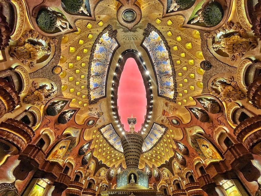 On the main level, you’ll find a reclining Buddha shrouded in steam, further accentuated by a neon glow, but downstairs is even more surreal, with thousands of gilded Buddhas all encircling a glamorously decked out shrine to all things Buddhism.