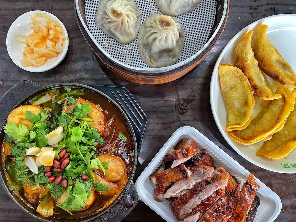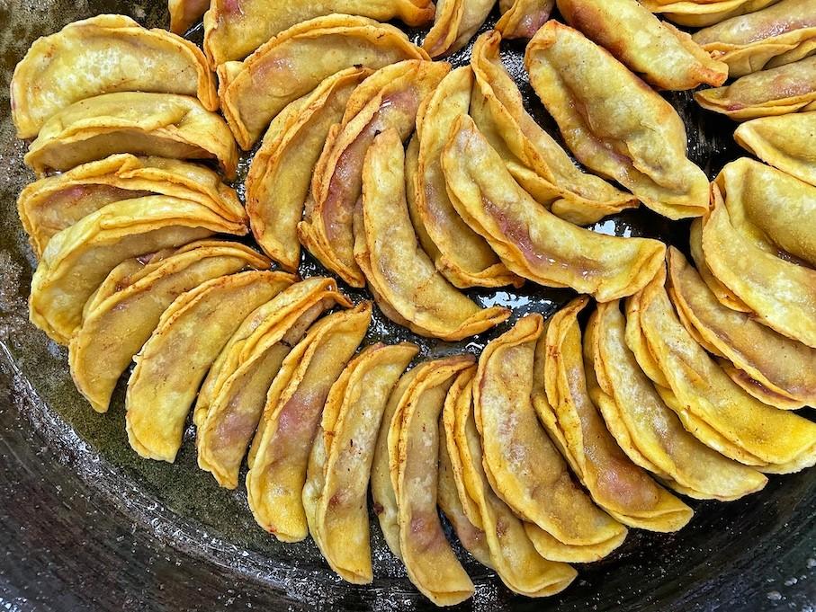 Found at the many Muslim restaurants around town, these pan-fried dumplings are stuffed with flavorful ground beef, onion and a steaming soup, before being fried to a crisp in a large flat-bottomed iron wok. Longer and thinner than most other Chinese dumplings, these potstickers are best enjoyed with beef soup.