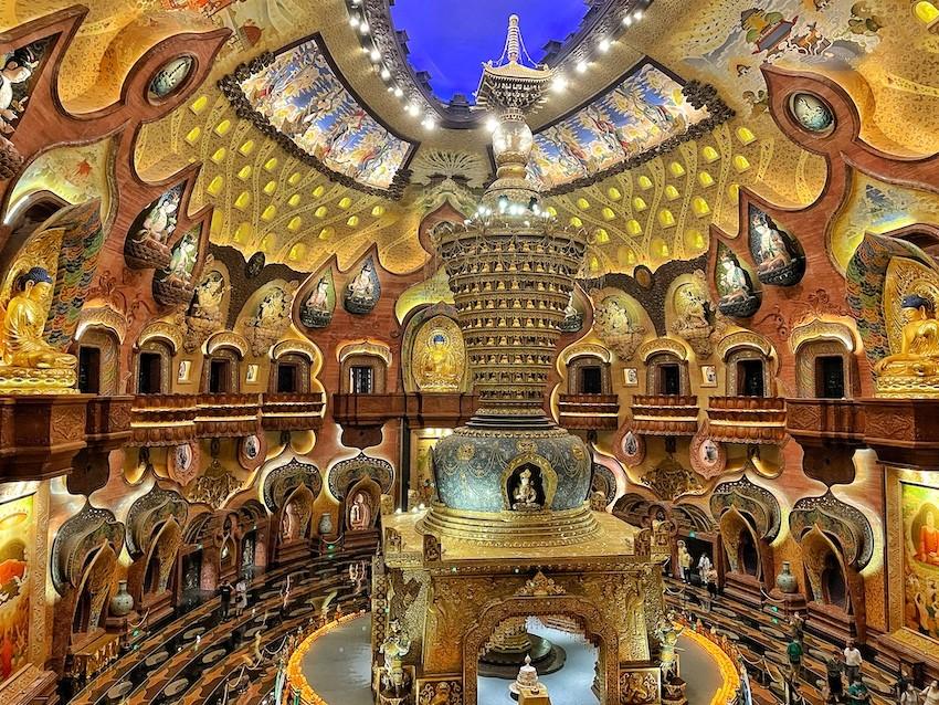 On the main level, you’ll find a reclining Buddha shrouded in steam, further accentuated by a neon glow, but downstairs is even more surreal, with thousands of gilded Buddhas all encircling a glamorously decked out shrine to all things Buddhism.