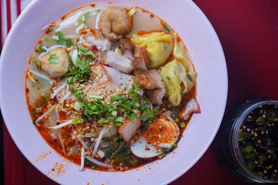 Kuay Teow Khae -Street Noodle Soup: A noodle street stall made famous by one of the OG food bloggers, Mark Weins, this always bustling lunchtime spot is the perfect place for a fragrant bowl of tom yum soup with all the fixings (like fish balls, fish cakes, minced pork, tofu puffs, and the like). Go for the signature flat egg noodles and make sure to order the bowl that includes crispy pork and wontons.