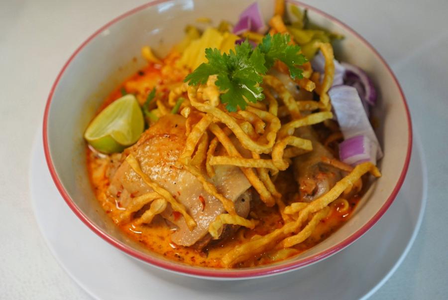 ORN the Road: An unassuming joint, this is a great place to try northern Thai style khao soi with fall-off-the-bone tender chicken. Equally standout, the pad see ew is laden with stir-fried cabbage and greens, topped with huge grilled prawns and perfectly squiggly noodles, the chicken rice is succulent, and the garlic pork is beyond flavorful. Pro tip: order it with a fried egg for a complete meal.