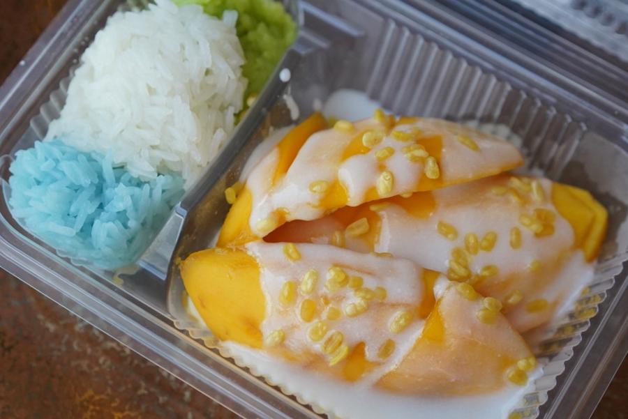 Mae Varee Mango Sticky Rice: An esteemed, 30-year-old mango shop, this is a fantastic place in the city to taste high-quality mango sticky rice. Each portion comes with an entire sliced, perfectly fresh mango, just-steamed sticky rice (sometimes dyed and flavored with pandan and butterfly pea), and warm and slightly salty coconut cream. The ratio of mango to rice justifies the higher price, as does the freshness and quality.
