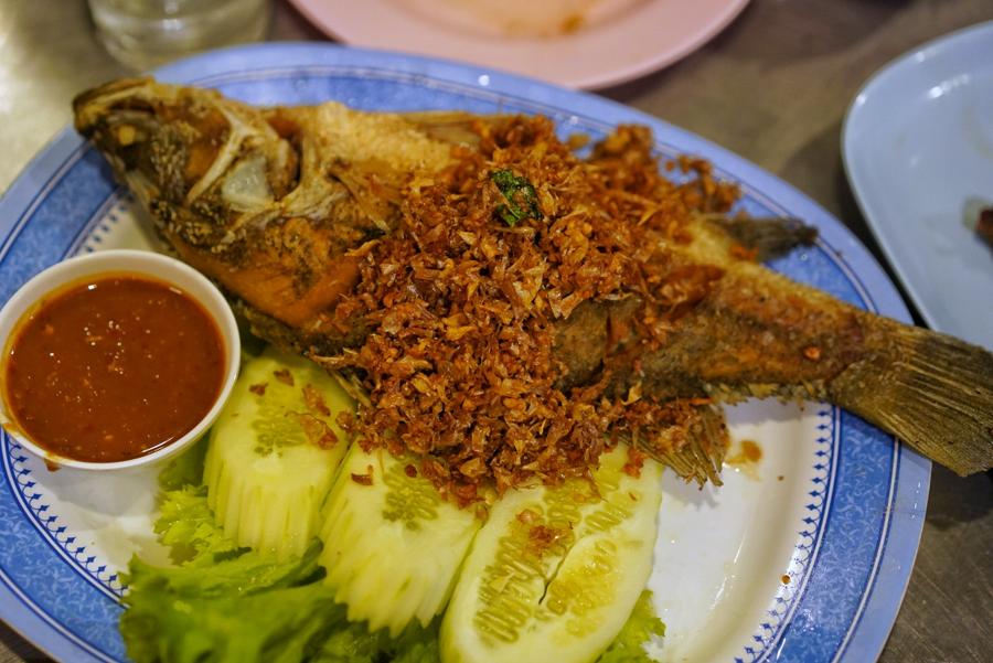 Nakhon Sanuk: This tiny daytime canteen specializes in Thai-Chinese style crispy pork smothered in a thick gravy and char siu over rice. Portions are generous for the low price and are best enjoyed with an expertly cooked egg.
