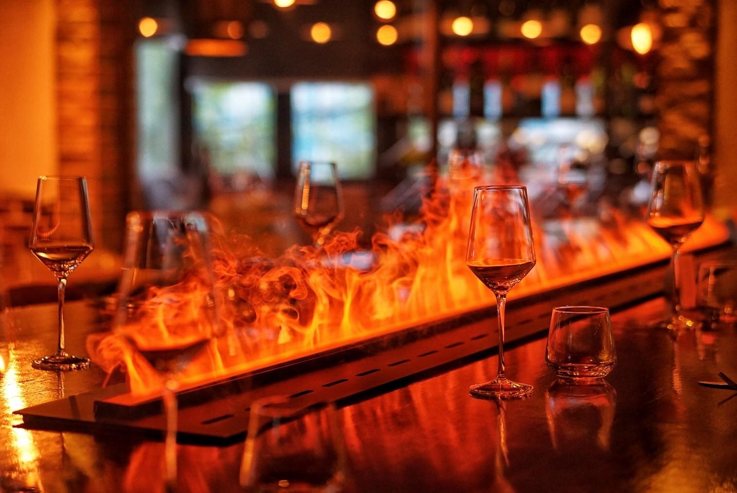 There is also a double bar situation, the second of which plays into the newest cocktail trend – a floating, eco-friendly bar. By floating, we mean that guests can come at it from all angles: there is no back. This is because there also are no bottles.