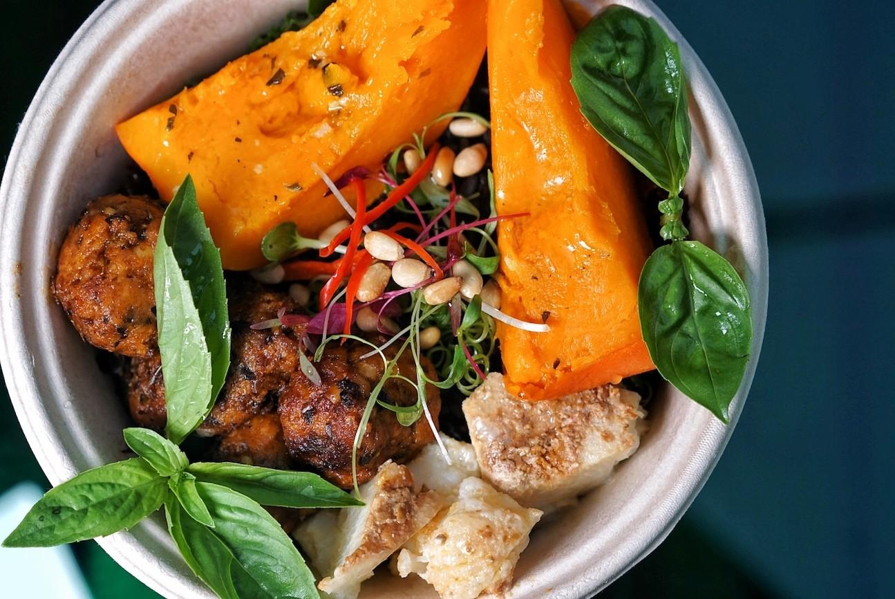 The name Carrot & Cleaver comes from the concept of a vegan (carrot) takeaway butcher (cleaver). Working closely with Vivian, Chef Guillaume Comparat applies techniques learned through his fine dining background to create seasonal, resourceful and flavorful meals that won’t weigh you down in the middle of a workday nor negatively impact the globe.