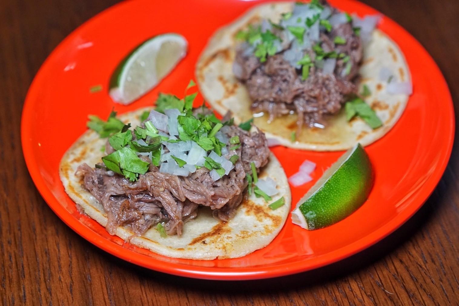 Tacos El Paisa, situated just outside La Mezcaleria’s wooden door, serves just one thing – tacos. They are identifiably half-moon in shape, sit snugly in one hand and are filled with a multitude of smoky, flame-licked meats – dripping with fat and stewing juices – a sprinkling of crunchy, diced onions and a few sprigs of cilantro adorn the top. Even better, they are open late. Like satisfy-your-taco-craving-at-2am late.