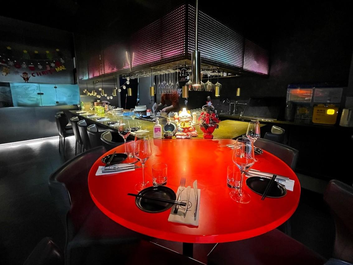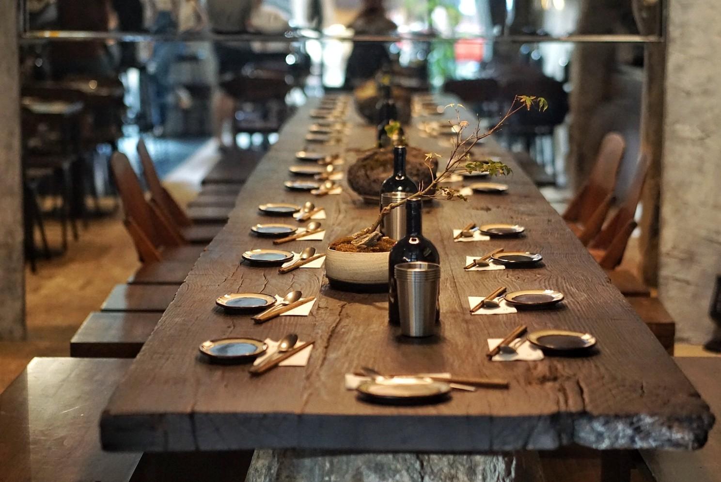 The latter offers dimmed lighting, with a walk-in cellar and a large, dark wood table, providing diners with a ‘private chef’s table’-like experience, while the former is breezy and bright with countertop-lined walls and a circular central table bedecked with flowers and candles.